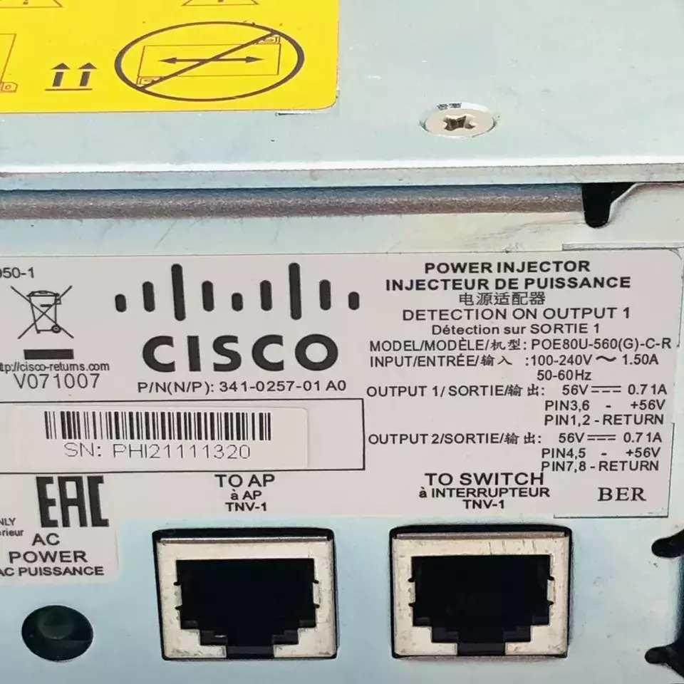 Injetor PoE Cisco Ethernet 56V AIR-PWRINJ1500-2 POE80U-560(G)-C-R 341-0257-01